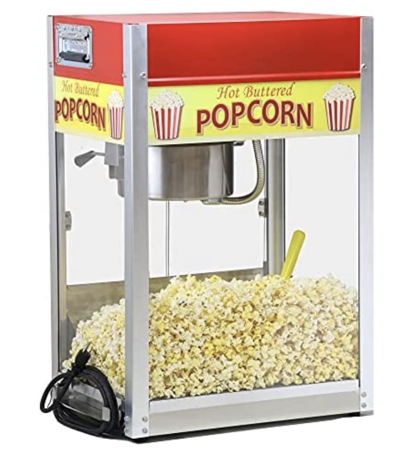 Our commercial popcorn machine is easy to use, and comes with enough supplies for approximately 25 treats. Perfect for school events like play day, church events such as vacation bible school, birthday parties, graduations, the list goes on and on. Additional supplies available for an additional charge.