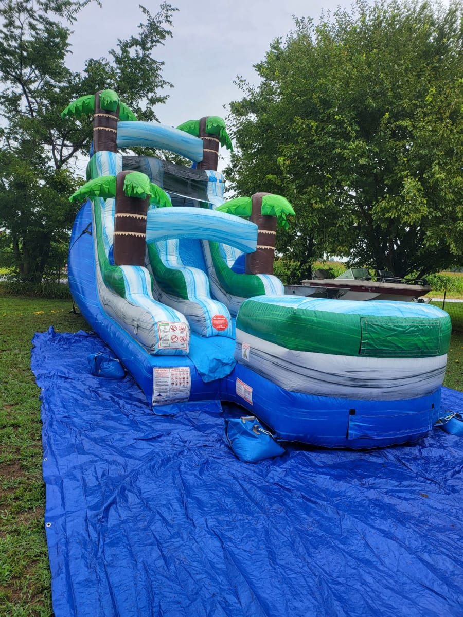 Our 15’ tall tropical slide is perfect for Birthday Parties, Graduations, and Family Reunions, or any other event. Kids and adults alike love this slide!