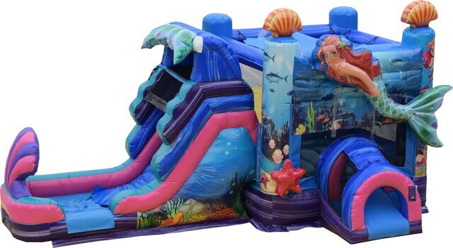 Introducing our enchanting Mermaid Bounce house Combo! Dive into an underwater adventure with this captivating inflatable, perfect for mermaid-themed parties and events. This combo offers a large bouncing area adorned with vibrant and whimsical mermaid-themed artwork, inviting kids to explore an underwater world of excitement.