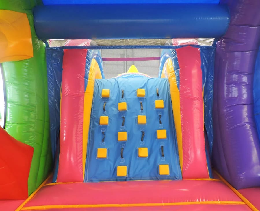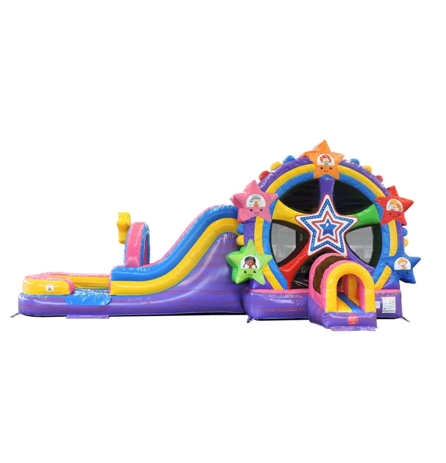 The Ferris Wheel Mega Combo Wet or Dry brings carnival-sized fun to any party. This 32-foot inflatable combo pairs a spacious bounce area with a giant slide and splash pool. Kids love the bright, whimsical design. Parents love the durable build and easy wet-or-dry setup. Ideal for birthdays, community events, and backyard blowouts. 🎉📸