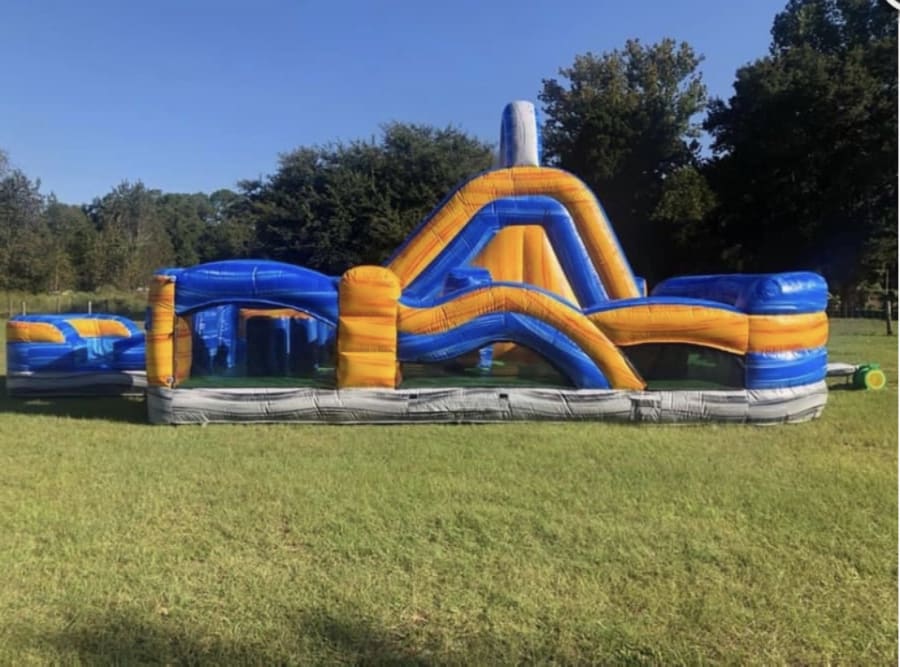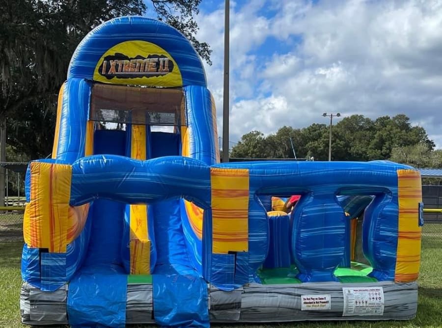 Our our extreme dual slide obstacle course is fun for everyone! Can be used with water for those hot summer days, or without. Kids and adults can race each other to see who emerges victorious!