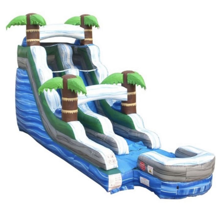 Our 15’ tall tropical waterslide is perfect for Birthday Parties, Graduations, and Family Reunions, or any other event. Kids and adults alike love this unit!