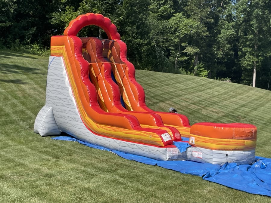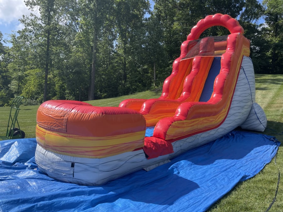 Our 18’ tall red waterslide is perfect for School And church events, birthday parties, family reunions, or any other event. Kids and adults alike love this unit, and will have a blast using it dry or as a waterslide.