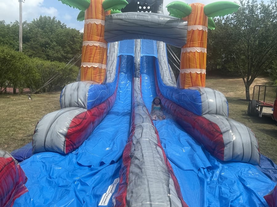 The biggest waterslide In the Cape Girardeau area! This 22 foot tall, dual lane slide, is 46 feet long. Fun for kids and adults alike. This slide features inflated landing surfaces to make it even better! It’s sure to be a hit at your next party or event!